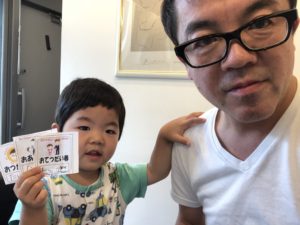 長男が父の日の似顔絵を近所のスーパーに展覧したら